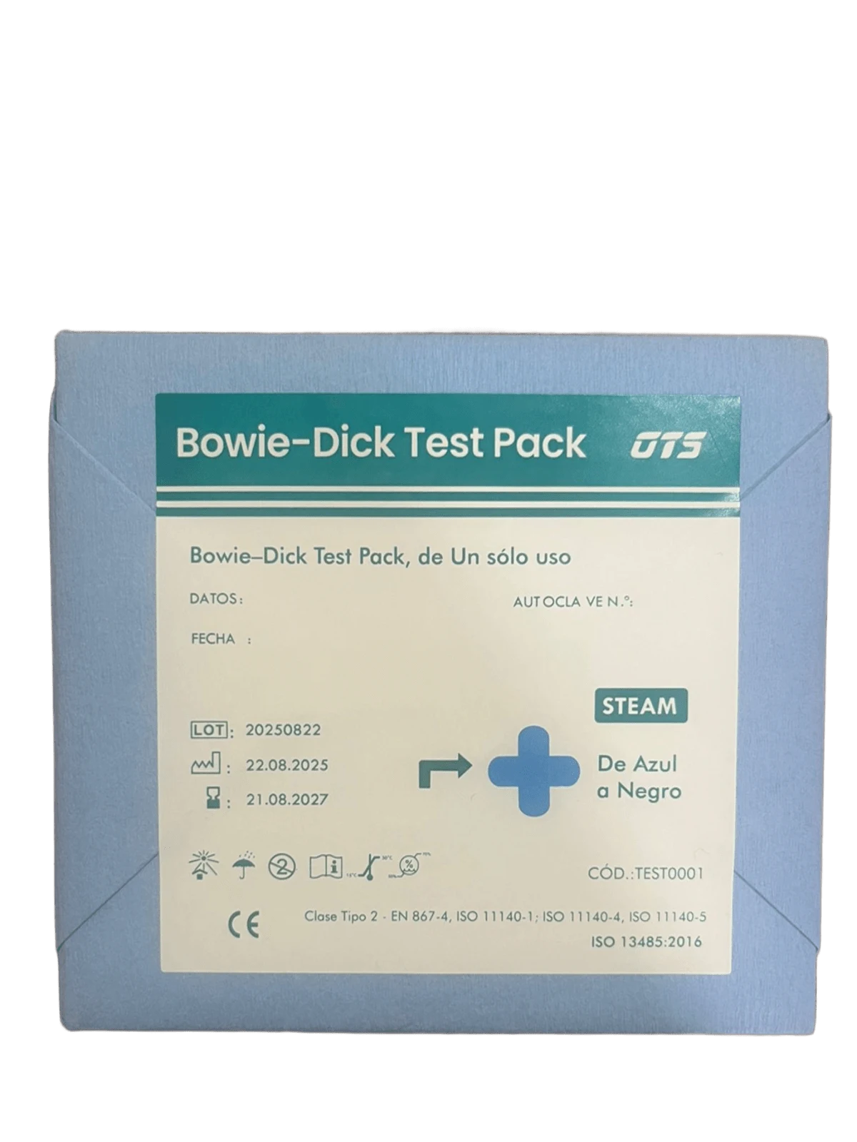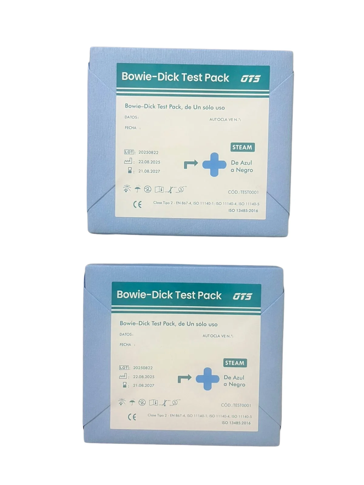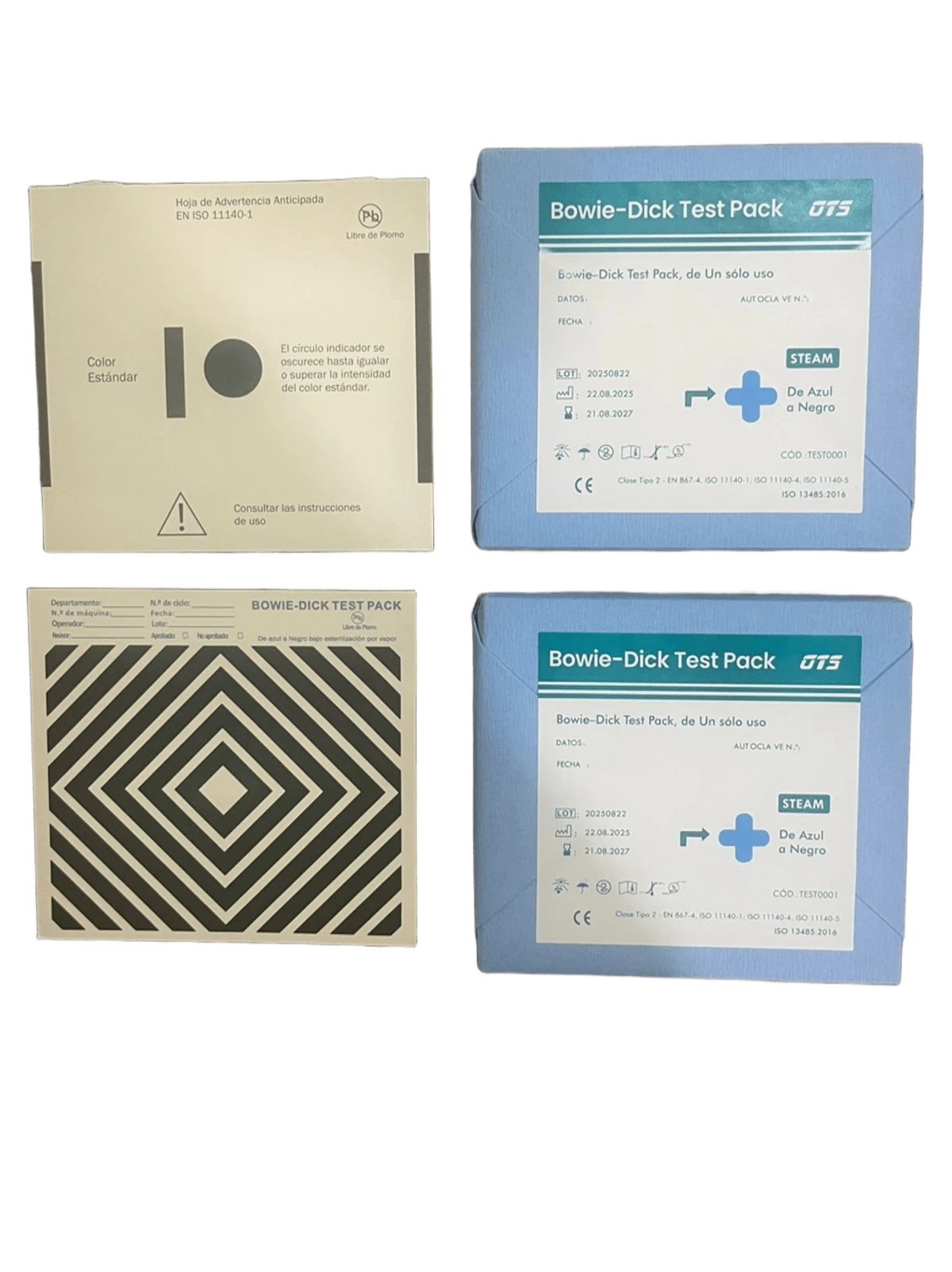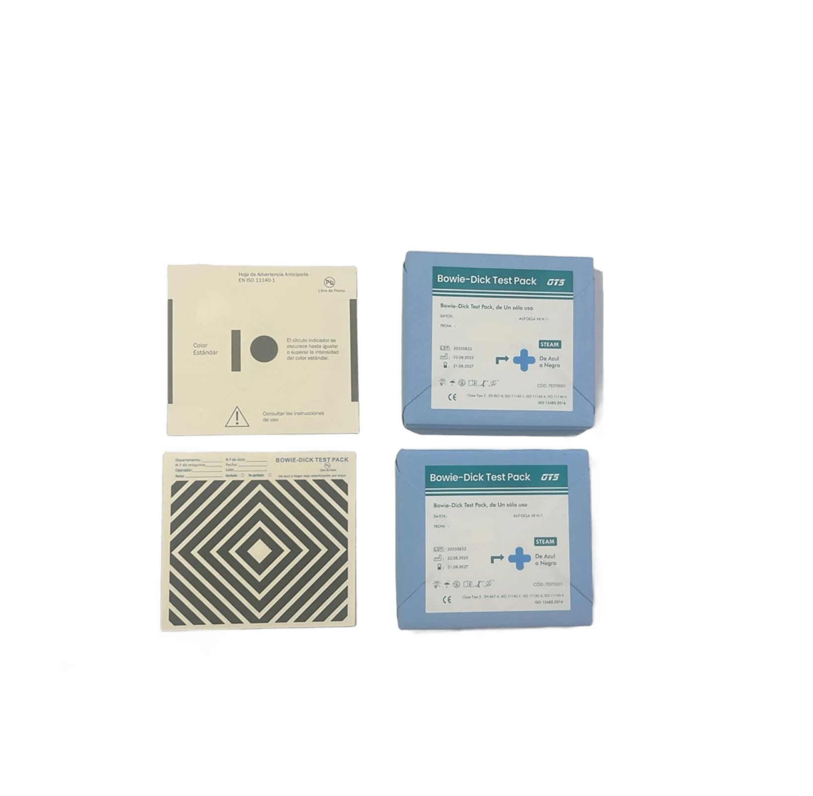 El Test Bowie Dick Pack es esencial para evaluar la eficacia de la penetración del vapor en esterilizadores. Ideal para clínicas y hospitales que buscan asegurar la calidad en sus procesos de esterilización.