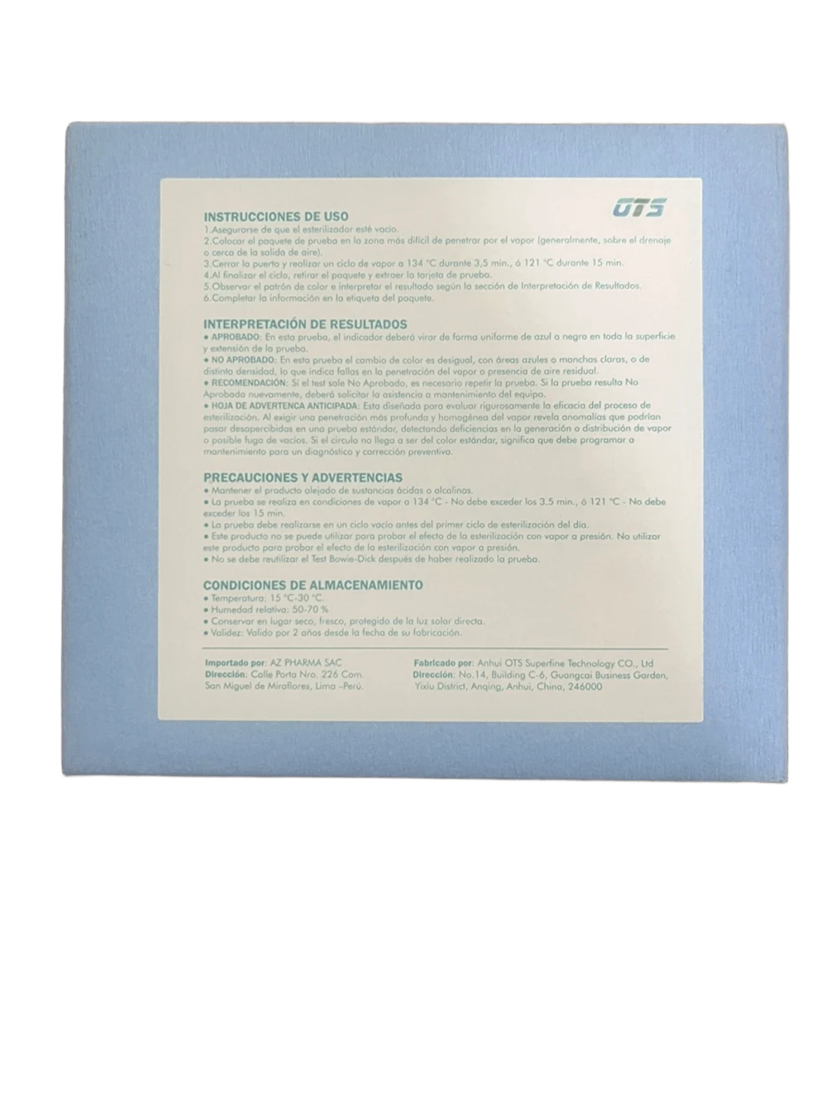 | Test de Bowie-Dick Pack | 115mm x 125mm | TEST0001 | 100 piezas / caja | De azul a negro |